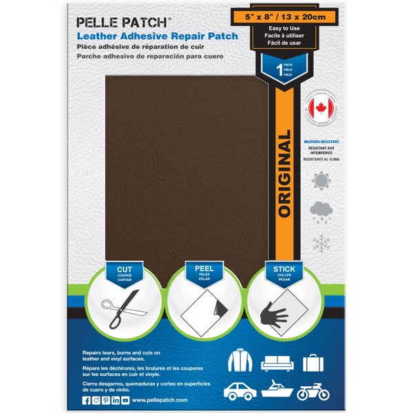 - Quickly and easily repair damaged leather or vinyl items with Pelle Patch. Just cut, peel and stick. Restore your damaged leather to its former glory in minutes!
