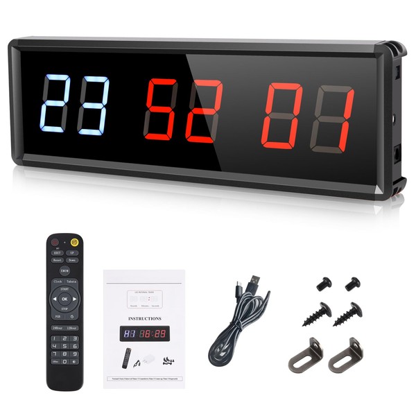 - HD LED Display and Remote Control: Crystal clear LED display with bright red and blue LED numbers; Brightness is adjustable in 5 levels; Remote control range up to 10 m, built-in 85dB buzzer, there is a clear sound, there is a sound when the training ends and starts (can also be set to turn off)