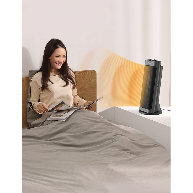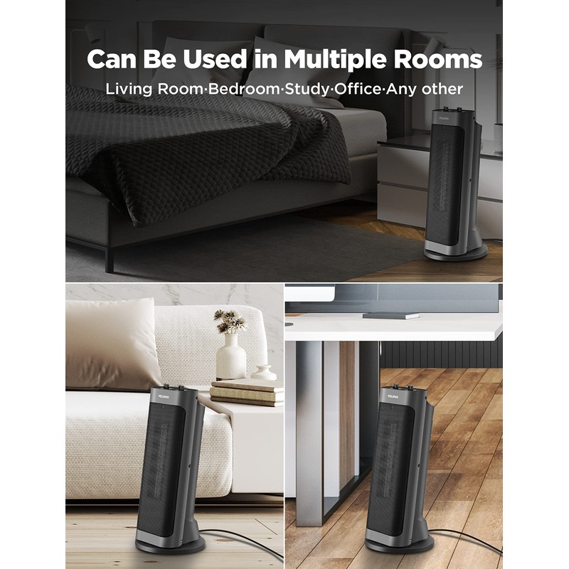 PELONIS PTH15A2BGB 1500W Fast Heating Space Heater, Programmable Thermostat, Easy Control, Widespread Oscillation, Over Heating & Tip-over Switch Protection, 7.72 x 7.72 x 17.76 Inches, Gray