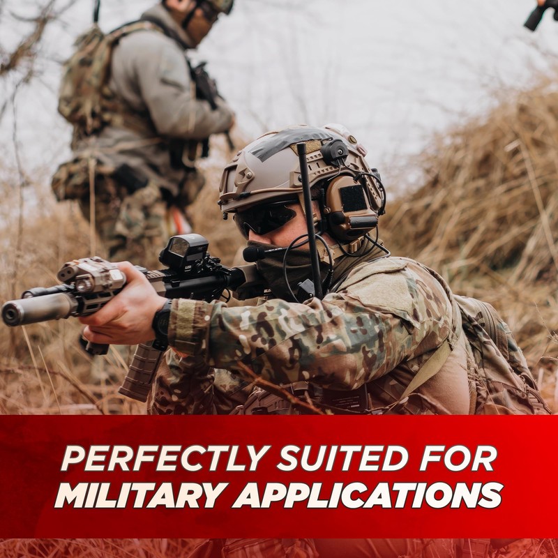 The rail adapter can be installed on your helmet directly which will reduce many steps if you want to remodel your headband headset. With the electronic active noise reduction and pickup technology, this ear defender headset can provide a more clear and natural sound. The sound reduction rating of noise defenders is rated at SNR: 22dB, a mean value. It is compatible with 3M Peltor Comtac or similar communications headsets.