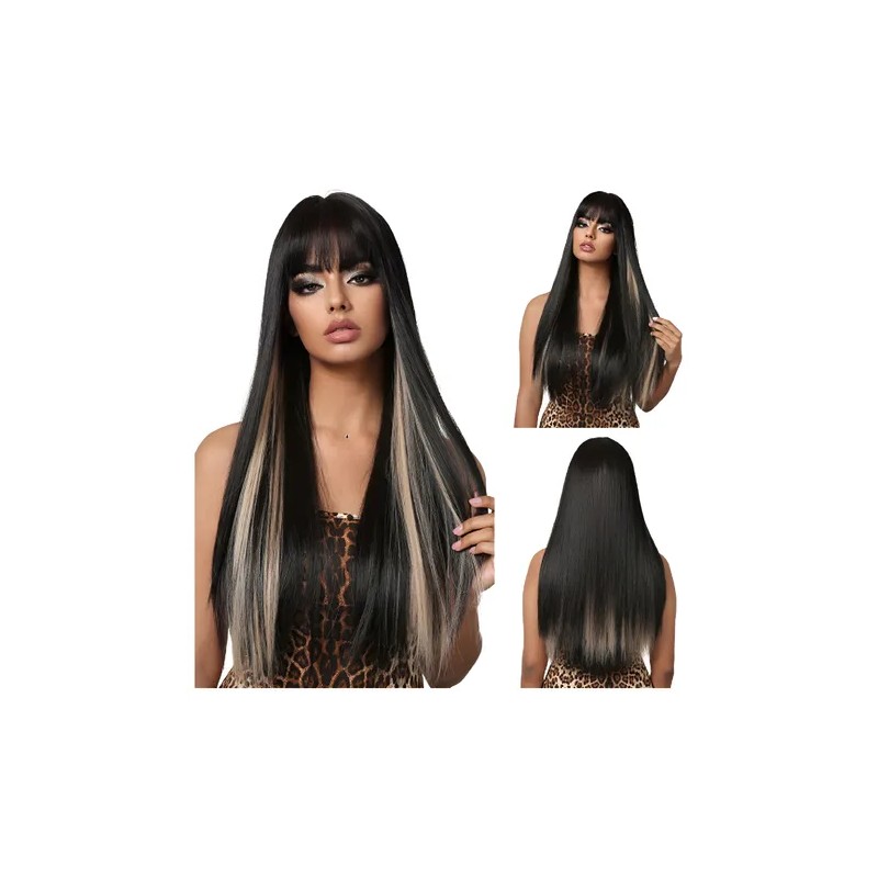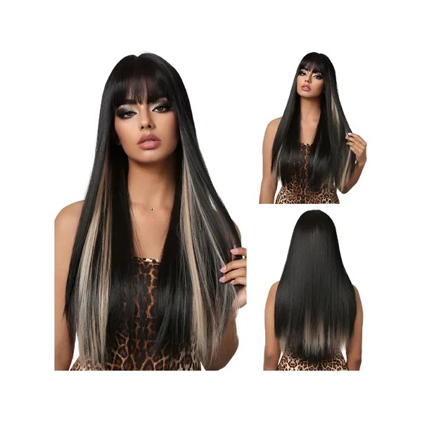 Estilo de peluca único: esta peluca larga y recta con flequillo le da una decoración especial a la línea del cabello, el cabello roto lo hace más estratificado y el flequillo esponjoso adorna la frente para una apariencia perfecta.
