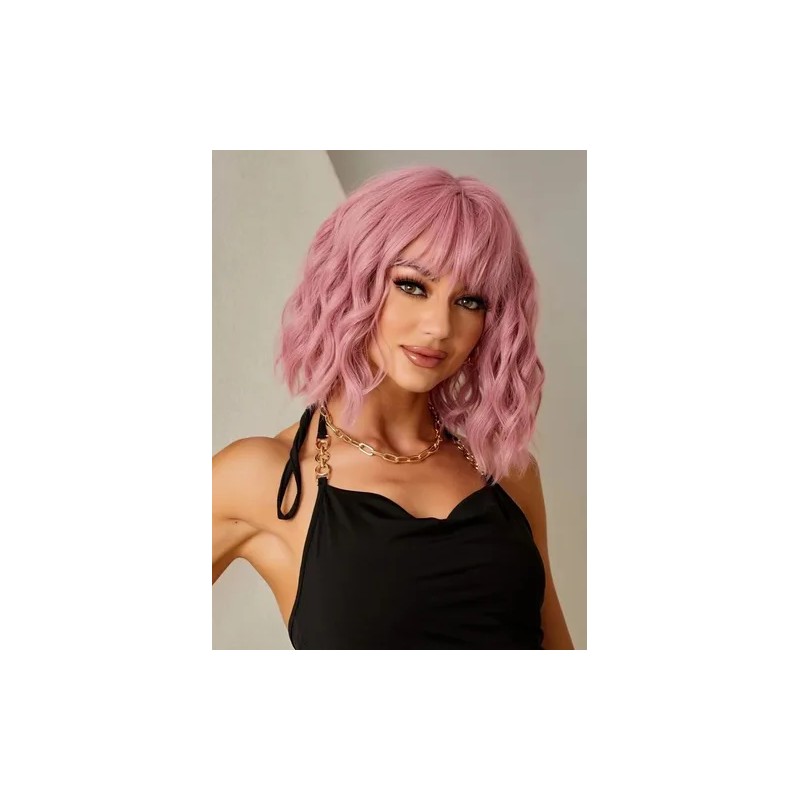 1x peluca mujer bob rosa elegante
