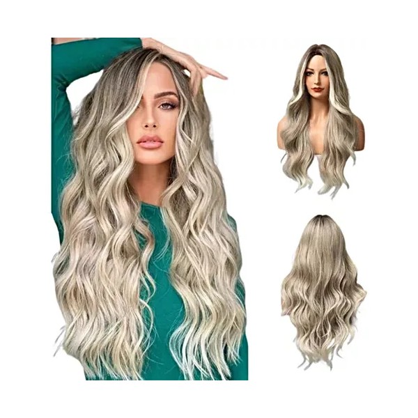 Peluca Rubia Natural Larga Ondulada Cosplay Mujer Dama