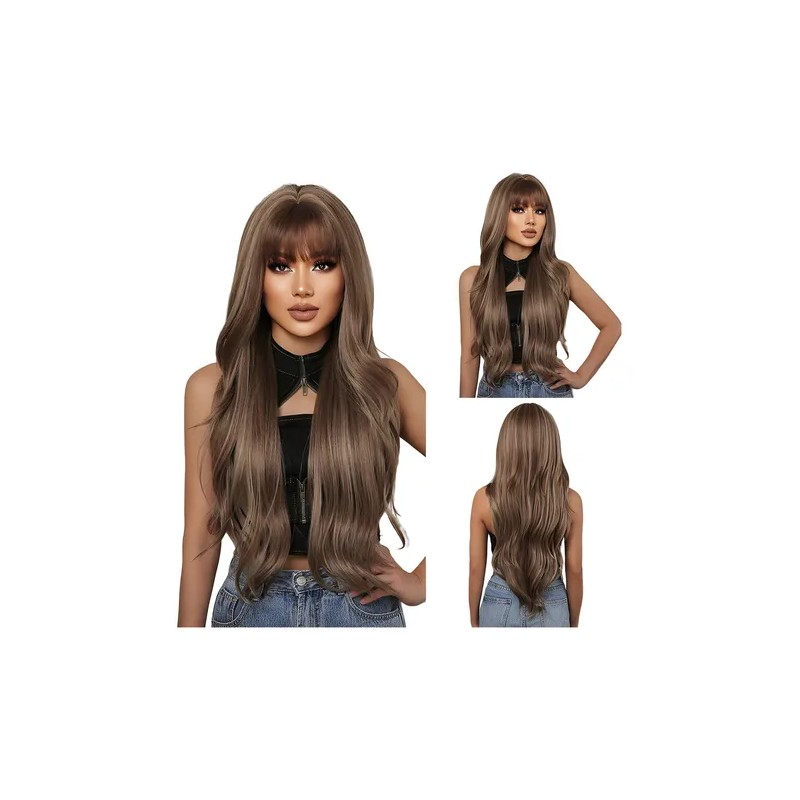 Pelucas Castaño Oscuro Mujer Ondulada Peluca Larga