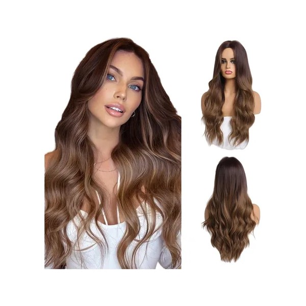 Pelucas Mujer Dama Cabello Naturales Larga Onduladas Marrón