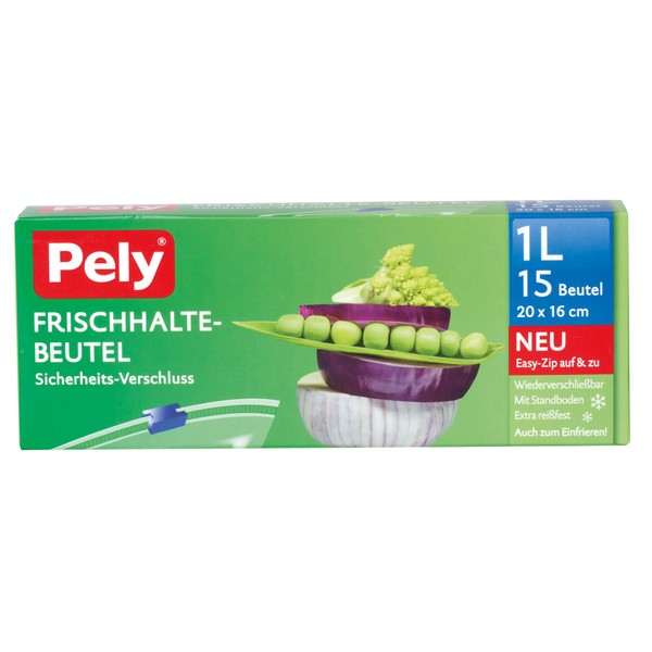 pely 5140 Frischhalte-Beutel mit Sicherheits-Verschluss, 1 Liter, 15 Beutel