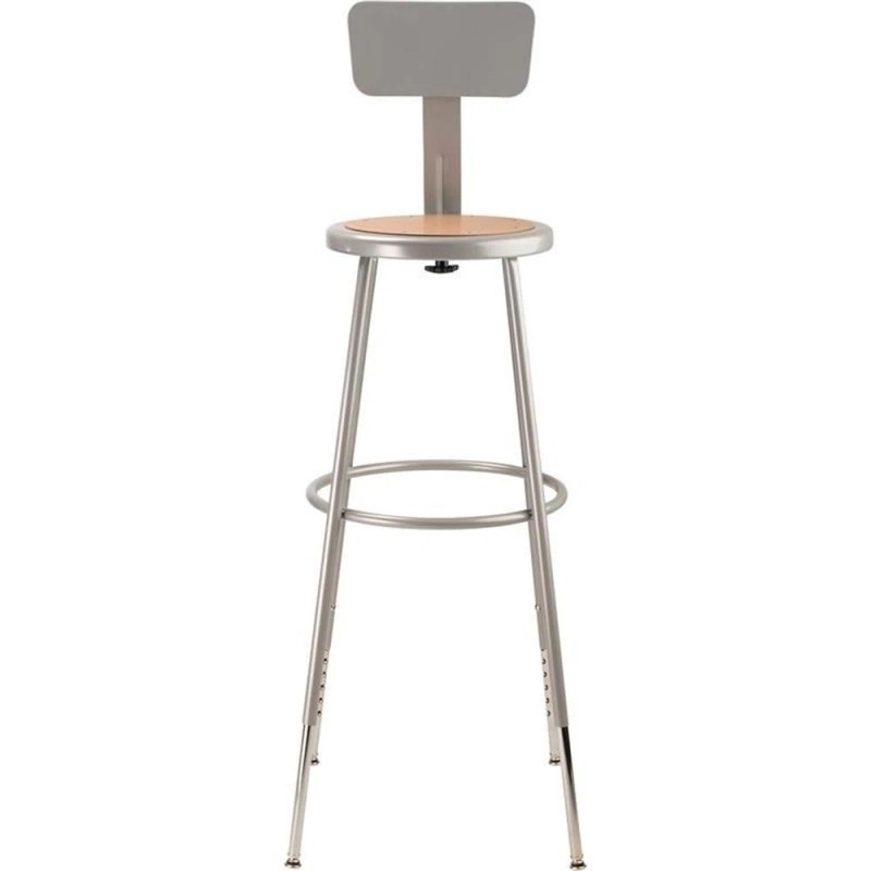 The durable construction and classic design of the heavy-duty stools are ideal for hands-on educational settings like art rooms, science labs, home economics or shop classrooms. These reliable stools feature a sturdy frame of 18-gauge steel tubing securely welded to a 14" diameter seat pan. Riveted to the pan are firm, round Masonite seats that will not warp, chip or crack as they provide years of dependable use. Footrest rings are securely bonded to each leg with four spotwell contact points. This model features height-adjustable legs extending from 32" to 39" in 1-inch increments and adjustable backrests that can be moved 2" up/down and forward/back.