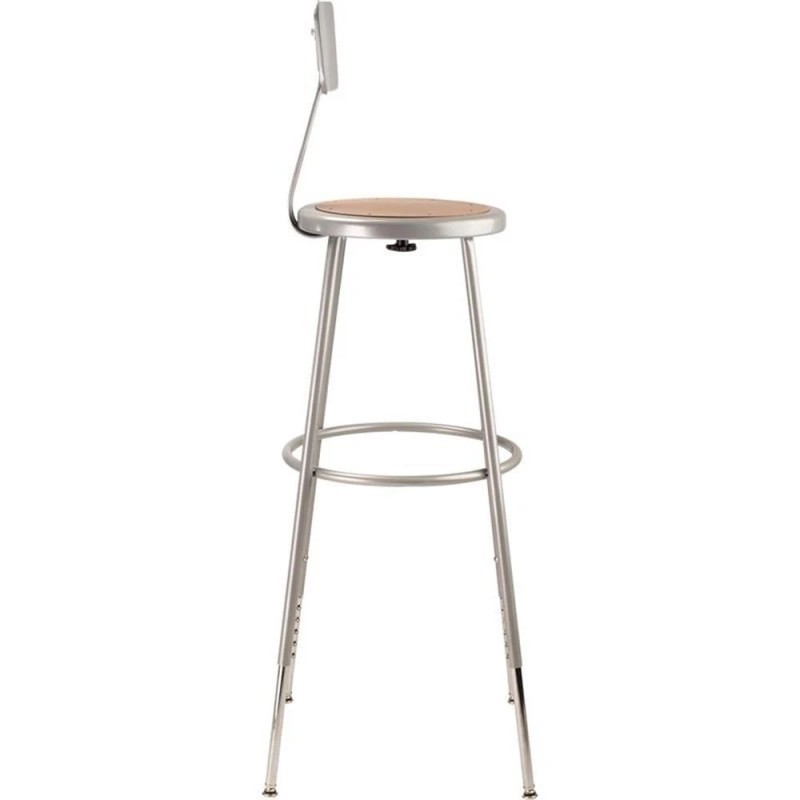 The durable construction and classic design of the heavy-duty stools are ideal for hands-on educational settings like art rooms, science labs, home economics or shop classrooms. These reliable stools feature a sturdy frame of 18-gauge steel tubing securely welded to a 14" diameter seat pan. Riveted to the pan are firm, round Masonite seats that will not warp, chip or crack as they provide years of dependable use. Footrest rings are securely bonded to each leg with four spotwell contact points. This model features height-adjustable legs extending from 32" to 39" in 1-inch increments and adjustable backrests that can be moved 2" up/down and forward/back.