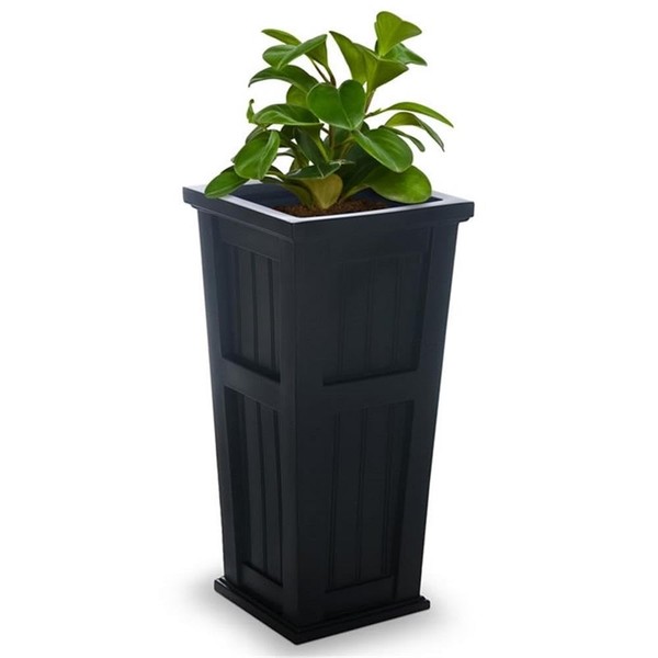 Pemberly Row 32" Tall Weatherproof Coastal Plastic Planter in Black