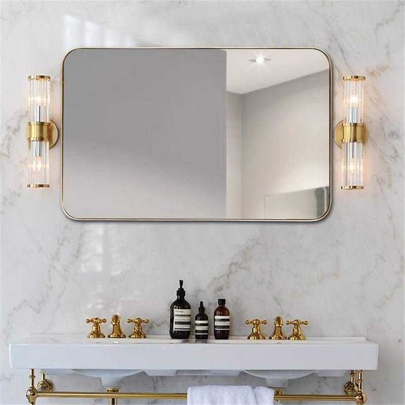 Pemberly Row 32"x20" Rectangle Metal & MDF Wall-Mounted Bathroom Mirror in Gold