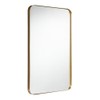 Enhance your bathroom's aesthetic with the Pemberly Row Rectangle Mirror. Featuring a glossy gold metal frame and rounded corners, this elegant mirror adds sophistication to any decor. Made with durable MDF backing and powder-coated metal, it is designed to last in humid environments. Its 20 x 32-inch size provides a clear reflection while visually expanding your space. The wall-mounted design is both space-saving and versatile, suitable for bathrooms, bedrooms, or hallways. Features : - Classic gold frame with rounded corners exudes elegance. - Durable MDF backing and powder-coated metal resist humidity. - 20" x 32" mirror creates a vivid, distortion-free reflection. - Wall-mounted design saves space and offers flexibility. - Explosion-proof design ensures safety during use. Specifications : - Product Dimensions : 20"L x 1.5"W x 32"H - Product Weight : 15 lbs