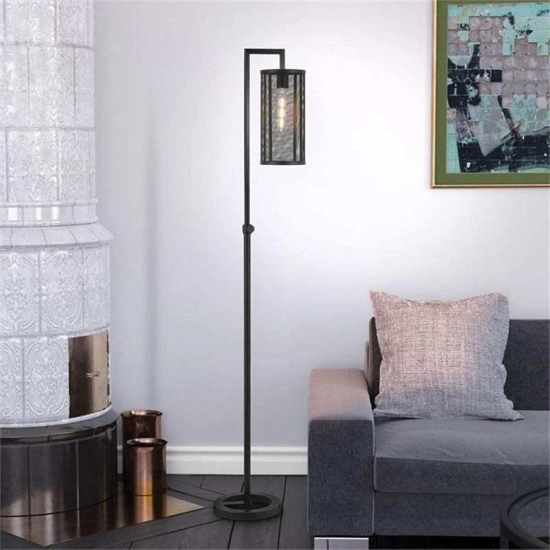 This industrial floor lamp takes notes from factory lighting. It creates a moody ambiance with the blackened bronze body and perforated metal shade, enhancing the textures in both the lamp and the room around it. A perfect choice next to your favorite reading chair or sofa, this floor lamp will easily become the focal point in any room such as the living room, bedroom, or home office.
