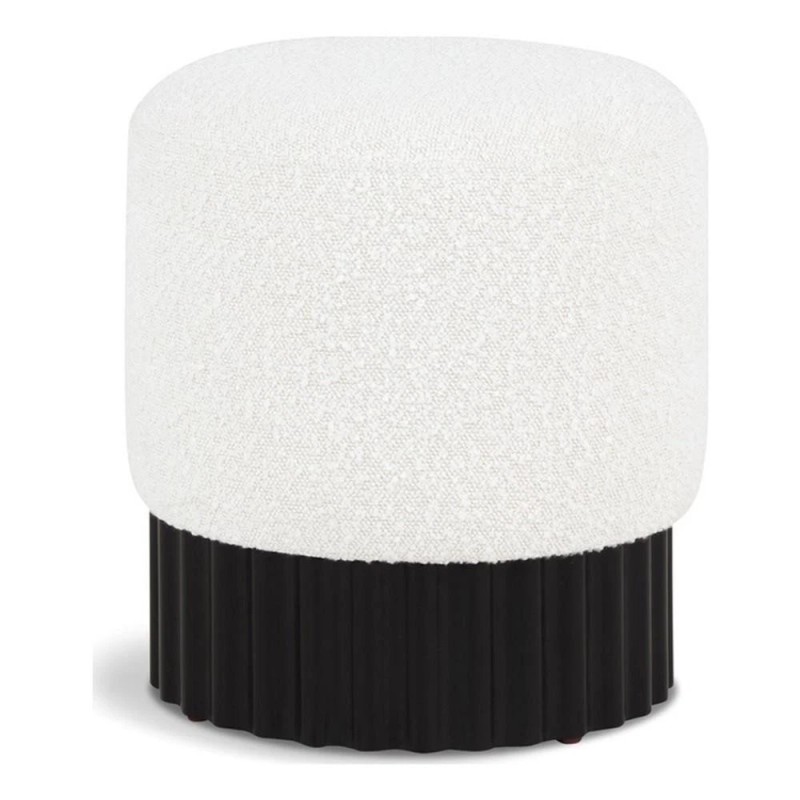 Pemberly Row Contemporary Boucle Fabric Ottoman/Stool in Cream/Black