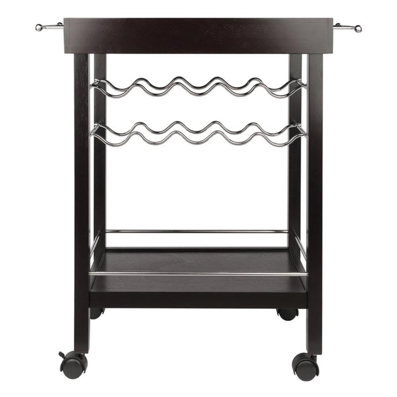 Pemberly Row Transitional Wood Johnnie Bar Cart in Espresso Finish