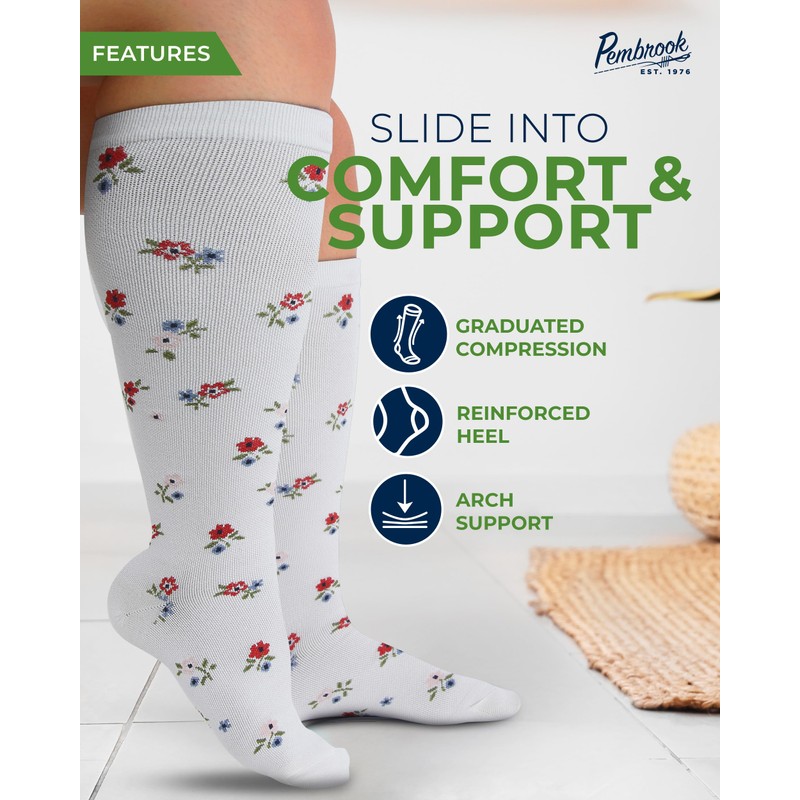 - Boost Your Leg Comfort - Experience ultimate softness with Pembrook wide leg compression socks for women and men. With comfort compression, these socks help promote circulation and reduce pain and discomfort.