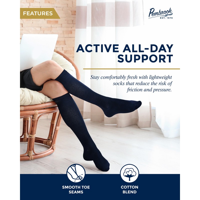 - Alivio del dolor de piernas e hinchazón: obtén comodidad relajante con calcetines de compresión Pembrook para mujer, hechos para algo más que alivio. Con una compresión de 8-15 mmHg, estos calcetines ayudan a promover la circulación y la transpirabilidad.
