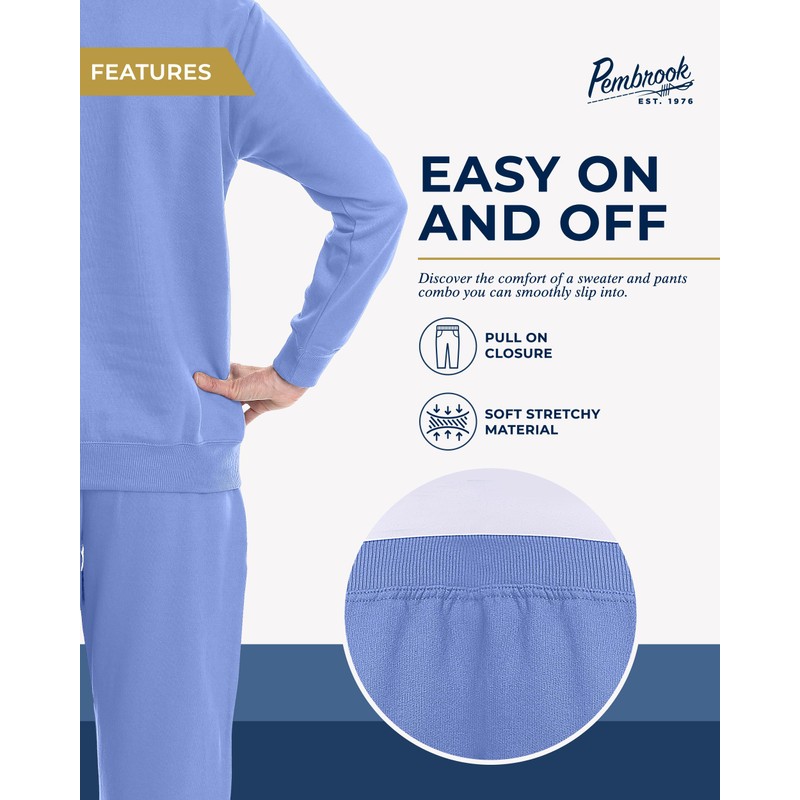 - Easy to Put on and Wear - The Pembrook women's sweatsuits feature a full elastic waistband and no zippers or buttons making them super easy to pull on and off! The casual fit and features make these the perfect lounge outfits for older women, seniors, and the elderly that may need adaptive clothes that can adjust to their need for comfort. We have Small to 3X-Large sizes. When in doubt, size down.