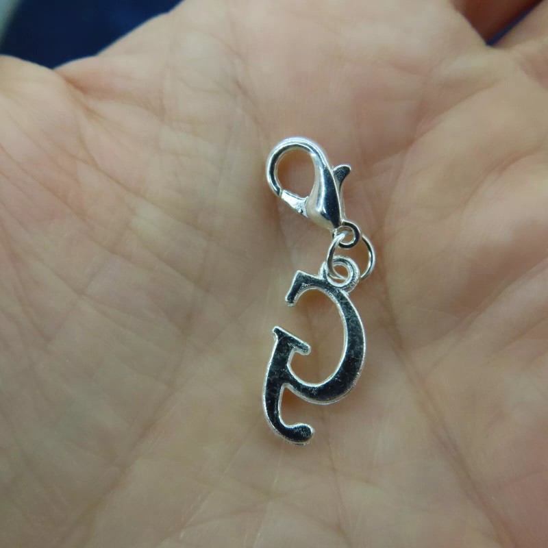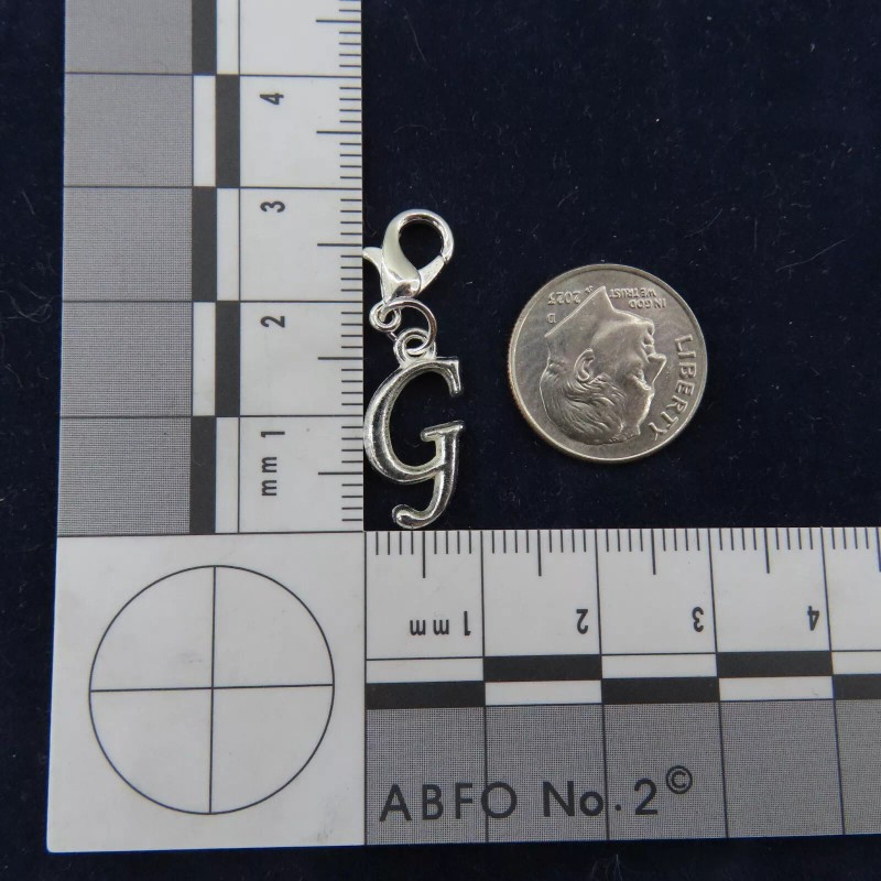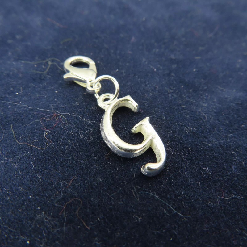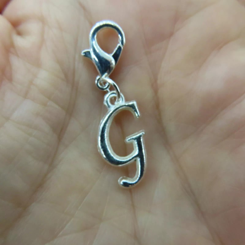 Pemby Studio Initial CURSIVE LETTER G Charm Zipper Pull Keychain Add On Clip Silver Tone Lg