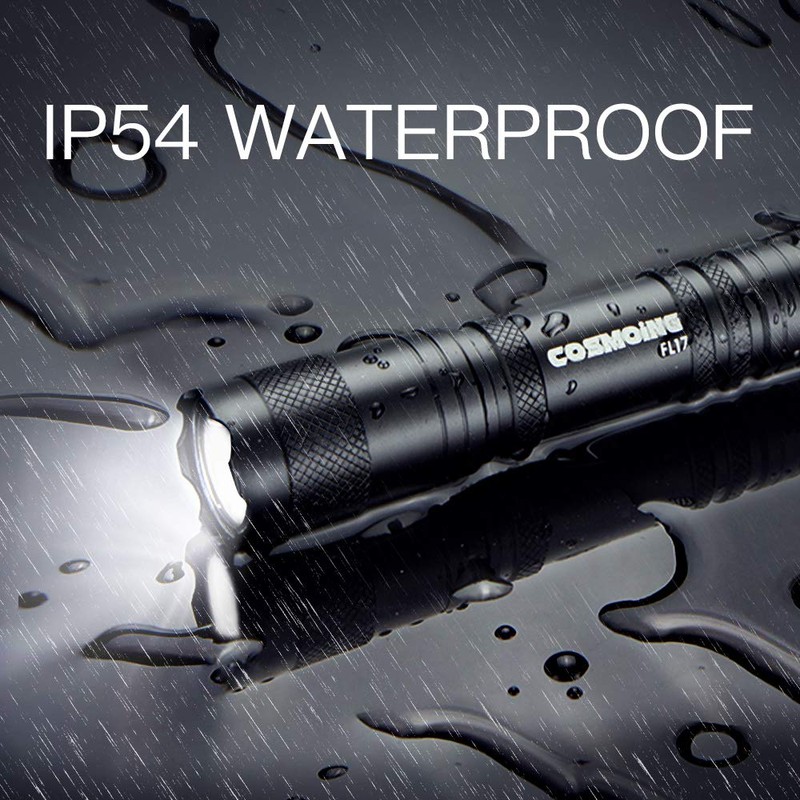 **COSMOING 3 Modes Super Bright Pen Flashlight** Durable slim design fits easily in a pocket or toolbox, pack in your camping gear, or survival kit. **●High quality aluminum alloy** \-- Comes 3 useful settings (High/Low/Strobe)&IP54 water-resistant function, our led mini flashlight is super bright, sturdy and durable to resist scratching. **●Palm-Friendly Penlight** \-- The lightweight strong body plus anti-slip texture provide good grip in your palm. **●Easy adjustable focus** \-- Design allows you to shape the flashlight beams from wide to narrow beams by simply pushing or pulling the head of the flashlight at your fingertips. **●Why Choose COSMOING?** Specialized LED Flashlight Designer and Manufacturer, we're working towards bringing you the good value products on the market. **Specification** ●Penlight Size: Pocket-sized 3W High Power LED Flashlight ●Dimension: 5.5*0.7*0.7 inches ●Brightness: On / H 180 LM / L 90LM /Stroble/OFF ●Waterproof: IP54 ●Type of Battery: 2x AA battery (Not Included) ●LED Bulb Beads: CREE XPE Q5 ●Drop Resistant: 1.5meter ●Runtime : H 3hrs/ L 6hrs **Instruction** The 3 ”modes” of the slim flashlights are attained by clicking on/off switch. **Safety Warning** ●DO NOT point the flashlight to anyone's eyes. Not recommend to use for checking pupils as it’s may be too bright. ●IP54 waterproof, but the penlight cannot be directly immersed in water. To avoid risk of injury, do not expose flashlight to excessive heat. ●If your flashlight is used infrequently, you'd better remove the batteries and store them separately, and visually inspect the inside of the flashlights for signs of corrosion. ●If you are not 100% satisfy with the purchase for any reason, don't hesitate to contact us to request refund or replacement.