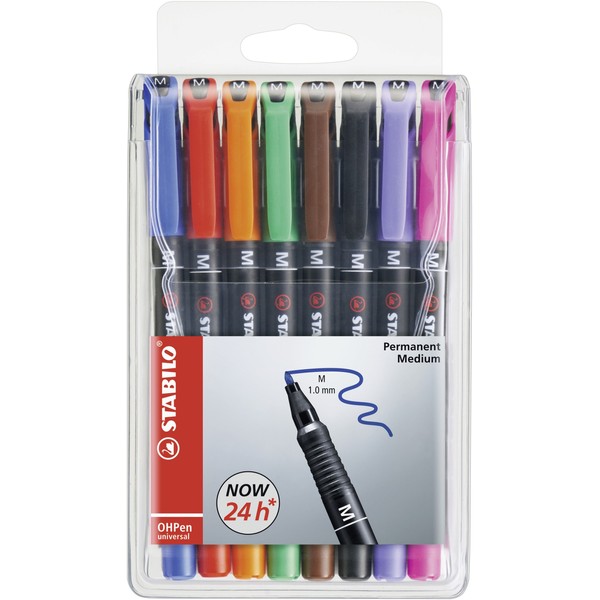 Pen for Overhead Projection - STABILO OHPen universal - Permanent Medium - Pack of 8 - Assorted Colours