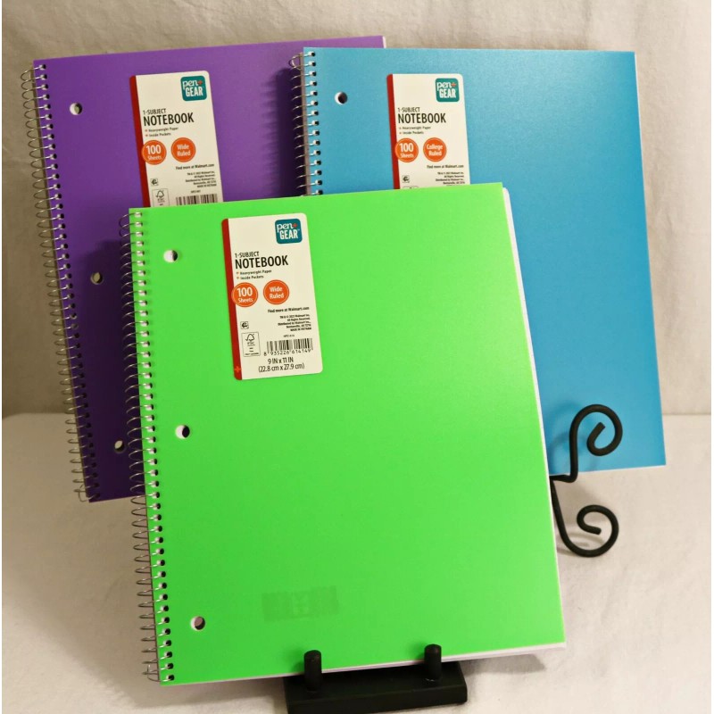 This spiral notebook by pen+gear is perfect for students of all ages. With 100 sheets of heavyweight paper, it provides ample space for notes, sketches, and other important information. The modern style and comes in various colors. A great addition to any back to school list. This notebook from pen+gear is suitable for a variety of school themes and subjects. Whether you're taking notes on a math problem or jotting down a homework assignment, this notebook for you. It's perfect for school, home or office use. Colors vary in each set but you will receive three vividly colored notebooks.