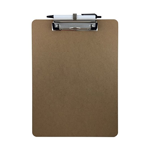 Pen Holder Clipboard, Letter Size, Low Profile Clip, Hardboard Single (Pen Included)