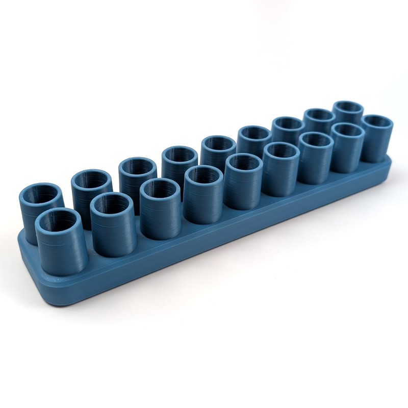 - Design: Unique 3D printed pen holder with 18 openings in two rows, specially designed for pens with 16 mm diameter