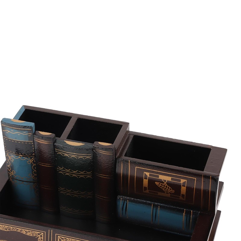 - [Easy to carry]-Unique design: this wooden pen holder looks like a set of decorated library books, suitable for bedroom and office.