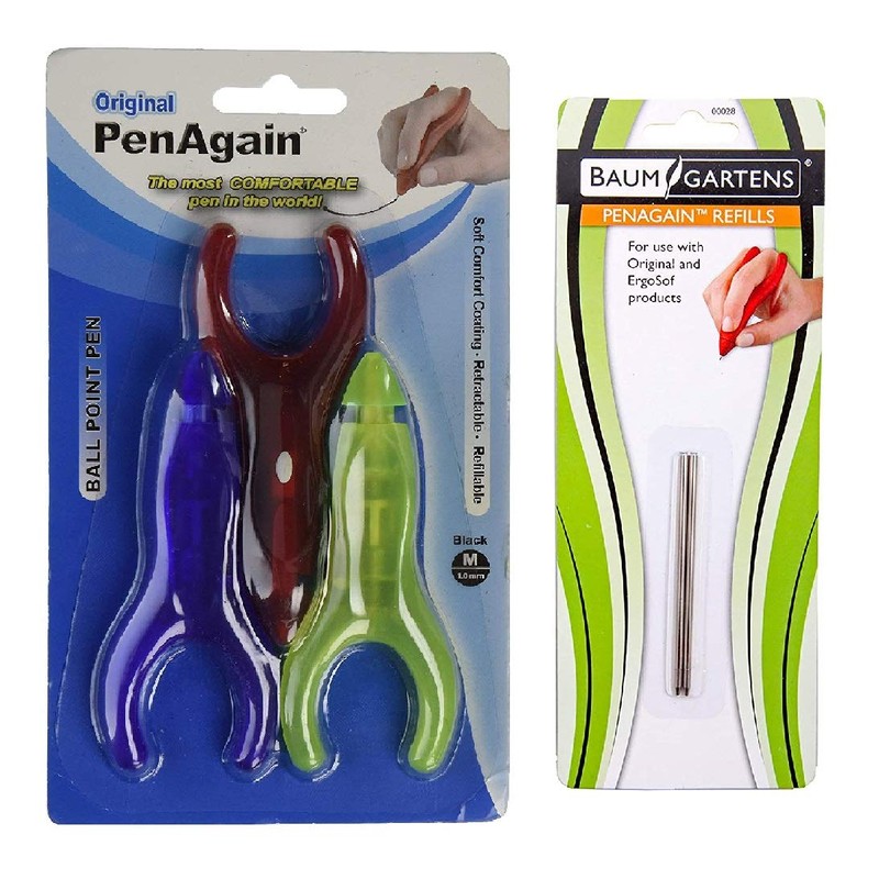 PenAgain Original 3 Pack Pens - Red, Blue, Green or Neon Green with 2 Black Ball Point Refills for 00063