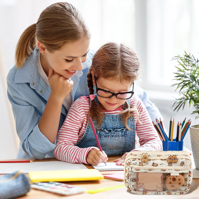- 【Complete Stationery Set】The handle design of this adorable pencil case is ergonomically crafted for multiple scenarios, allowing for easy portability. Including coffee-colored pencil case, doll, 20 stickers, notes, 2 brooches and pendants to meet students' daily needs. Each stationery is carefully selected, of high quality and comfortable to use.