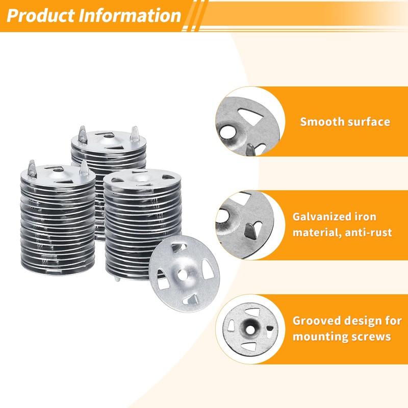 - Easy to Install : the middle of the 1-1/4 inch washers are easy to fix with screws or nails(not included), and the backside of the washer is designed with convex shape for securing the washer to insulation panels, which plays a fixed role, making the installation more stable