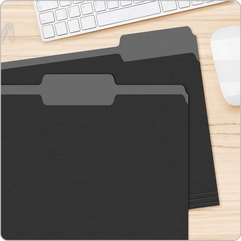 - CLASSIC DESIGN - Perfect for personal and professional use, the manila folders provide a classic, timeless look and match any office decor. The neutral black colored and clean design of the folders make them suitable for any setting.