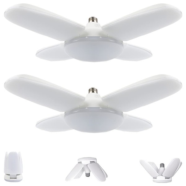 - (Changeable Design LED Lighting) This LED garage light is light and beautiful. Each light panel can be rotated 90 degrees, each individual can open the light panel at the appropriate angle according to their different needs and preferences, and can open up to 180 degrees (i.e. 4 lamp panels lay flat). Large illumination area for a better experience. (Transformable design, LED lighting for work) LED garage light, daylight color, 5 light types, product is lightweight and beautiful. Each light panel can be rotated 90 degrees, each individual can open the light panel at the appropriate angle according to their different needs and preferences, and can open up to 180 degrees (i.e. 4 lamp panels lay flat). Larger illumination area for a better experience.