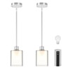 Pendant Light Kitchen Island Lighting, Height Adjuatable Rod Clear Dual Glass - with 3 Color Temperatures Bulb & Remote Control, Farmhouse Hanging Lighting Fixture for Dining Room Bedroom, 2 Pack