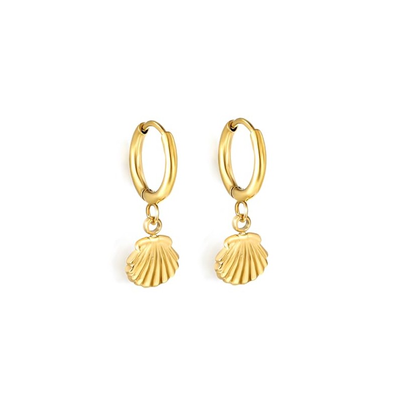 - DISEÑO ELEGANTE: Aretes colgantes con diseño de concha marina en acabado dorado, perfectos para un look casual o elegante