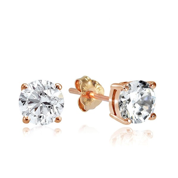 Pendientes redondos de circonita cúbica de 2 quilates, oro rosa y plata con destello