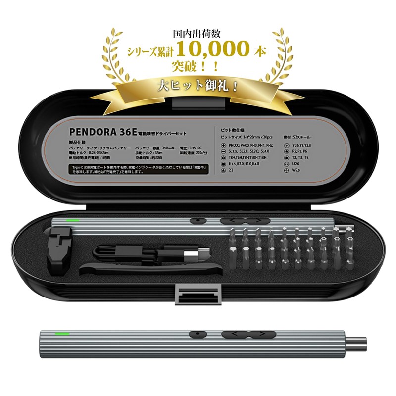 - The PENDORA Series: This pen type driver has been reported in numerous media as a beautiful and comfortable storage state, and has been developed with support for over 2,500 people in domestic and abroad. This precision electric screwdriver set is not only functional as a tool, but also has a slim design, so you can carry it with you in style at any time
