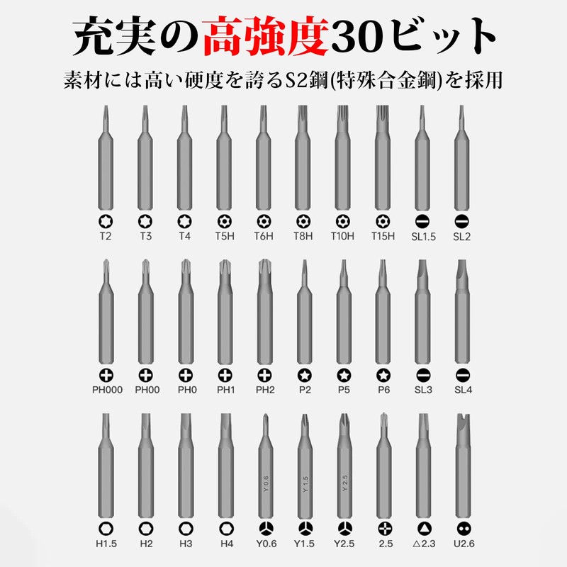 - Wide range of uses: With 30 different bits made of high hardness S2 alloy, it can be used for any purpose, including household appliances, precision smartphones, game consoles, and DIY PCs. You can choose the most frequently used bits, and it is easy to buy