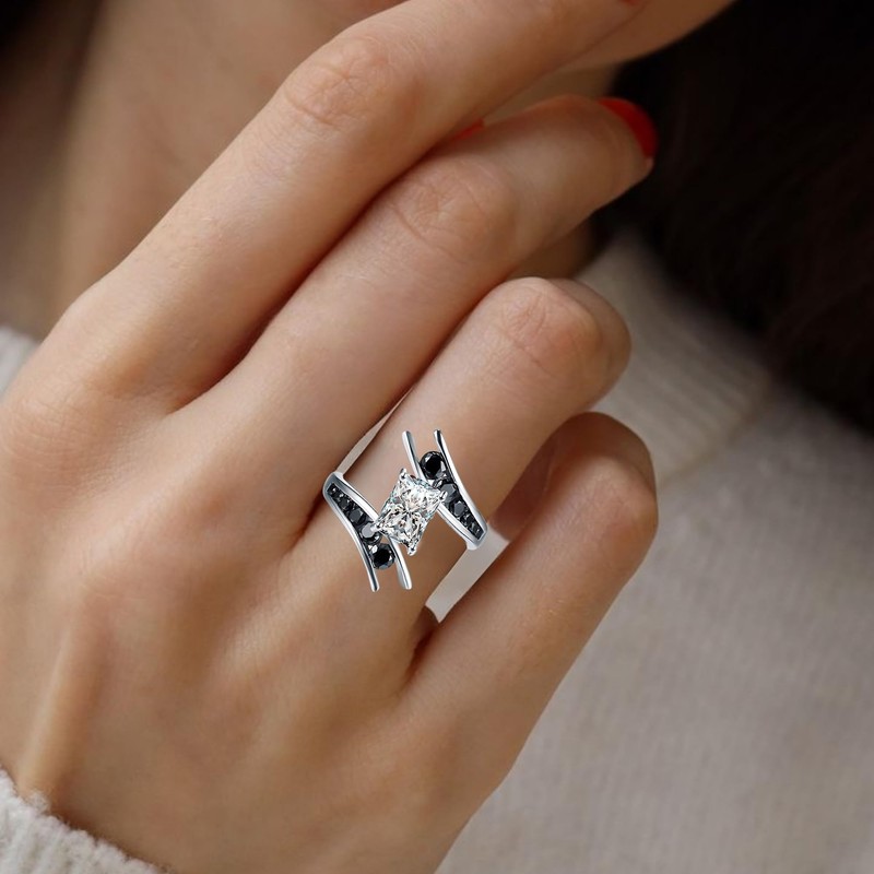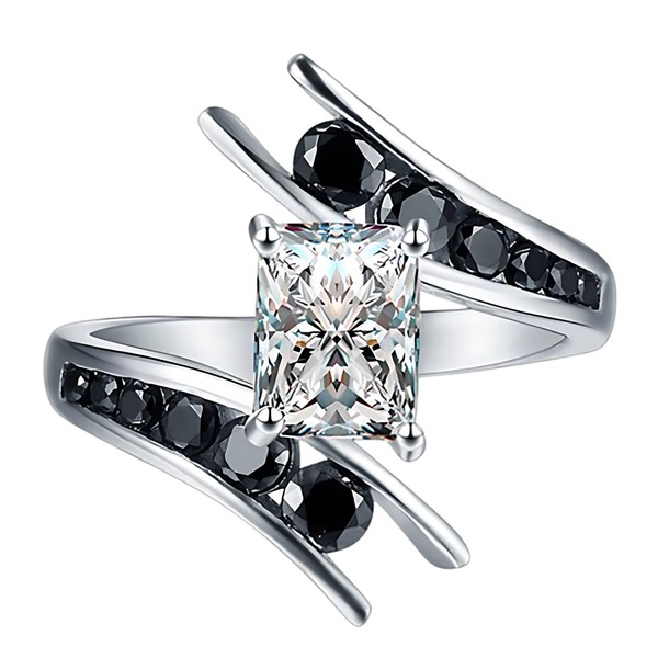 Penelope Emerald Black Engagement Ring for Women by Ginger Lyne |Unique 925 Sterling Silver Wedding Ring for Her |Black and Clear Cubic Zirconia Faux Diamond Travel Promise or Bridal