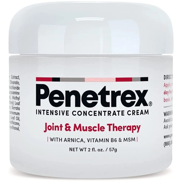 Crema Penetrex (60ml) para terapia articular y muscular. Contiene Árnica, Glucosamina, MSM, Colina, Boswellia y Vitamina B6 para aliviar el dolor y la inflamación desde la raíz. No es grasosa, mancha ni quema, y es vegana. Ideal para espalda, cuello, rodillas, manos y pies.