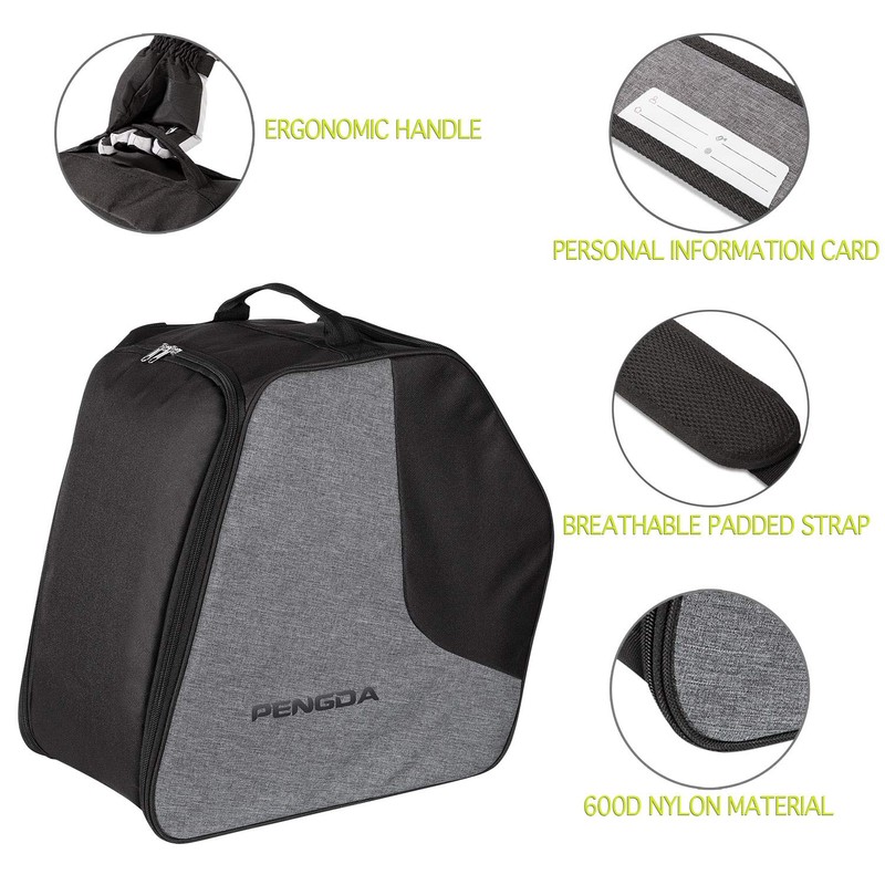 PENGDA Ski Boot Bag -Ski Boots and Snowboard Boots Bag Waterproof Travel Boot Bag for Ski Helmets, Goggles, Gloves, Ski Apparel & Boot Storage(2 Separate Compartments) (Black Grey)