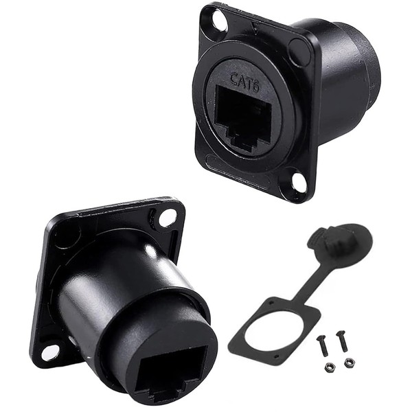 - Package includes: 2 x RJ45 CAT6 panel mount adapter, 2 x water/dust protection cap, 4 x screw and 4 x nut