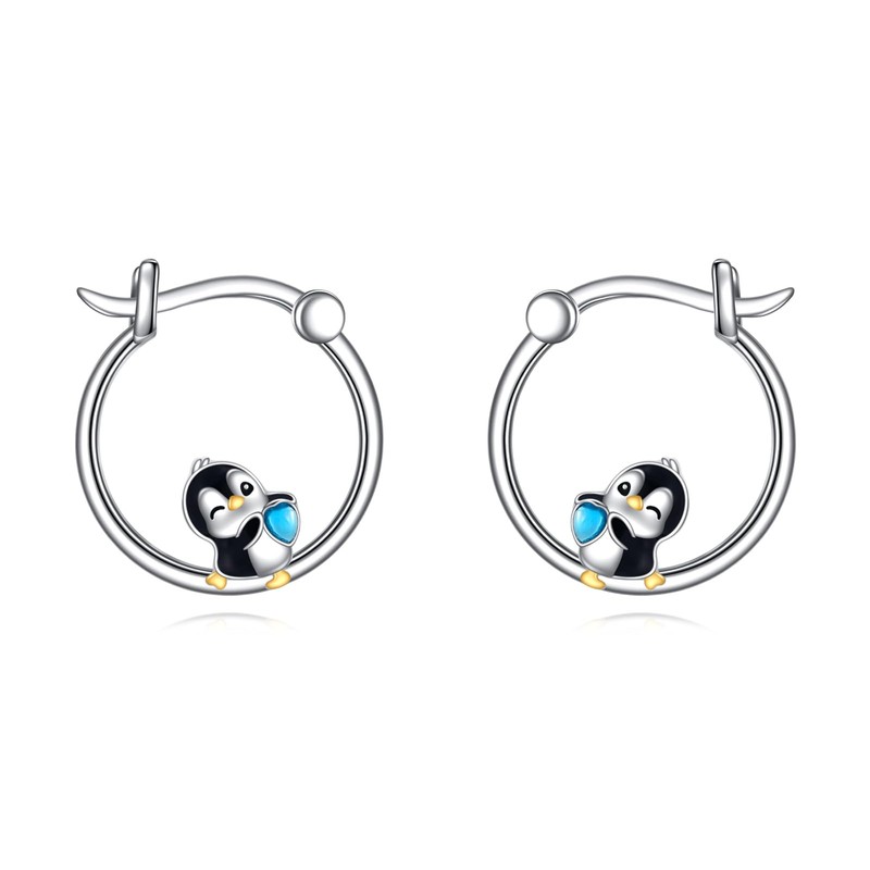 - Penguin Hoop Earrings Sterling Silver Cute Animal Jewelry Birthday Gifts for Women Girls