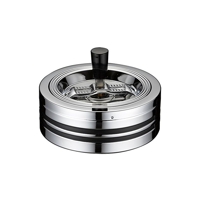 Penguin Lighter Ashtray Chrome Line 2 Tabletop Rotating Diameter 5.7 inches (14.5 cm), Silver
