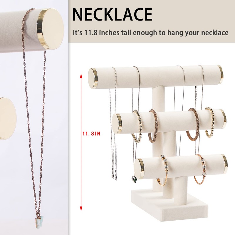 - CUTE COLOR:The bracelet stand is wrapped in beige white velvet, and the black is the perfect prop for display and photo shoots.
