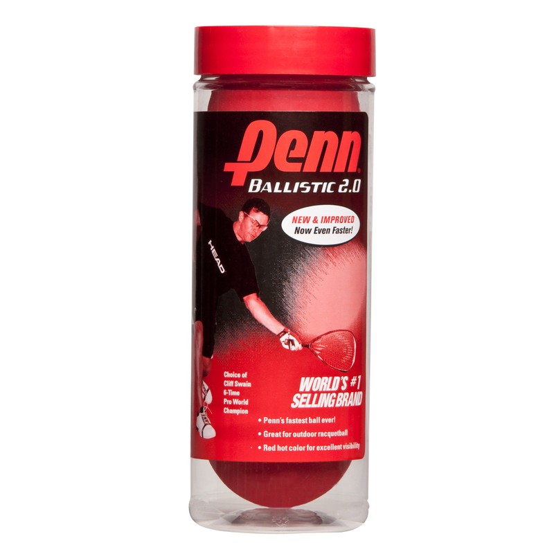 Penn Ballistic 2.0 Red Racquetballs - 1 Can of 3 Fast Racketball Balls