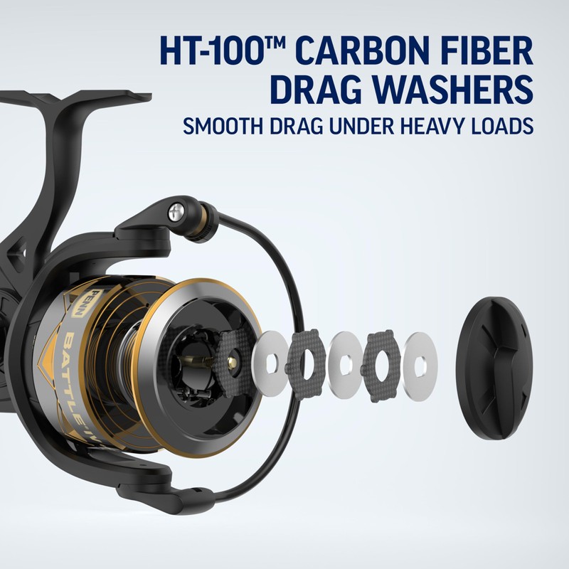 - HT-100 FRONT DRAG with a max drag of 30lb | 13.6kg. HT-100 carbon fiber drag washers let you pull in 100 miles of line with minimal wear.