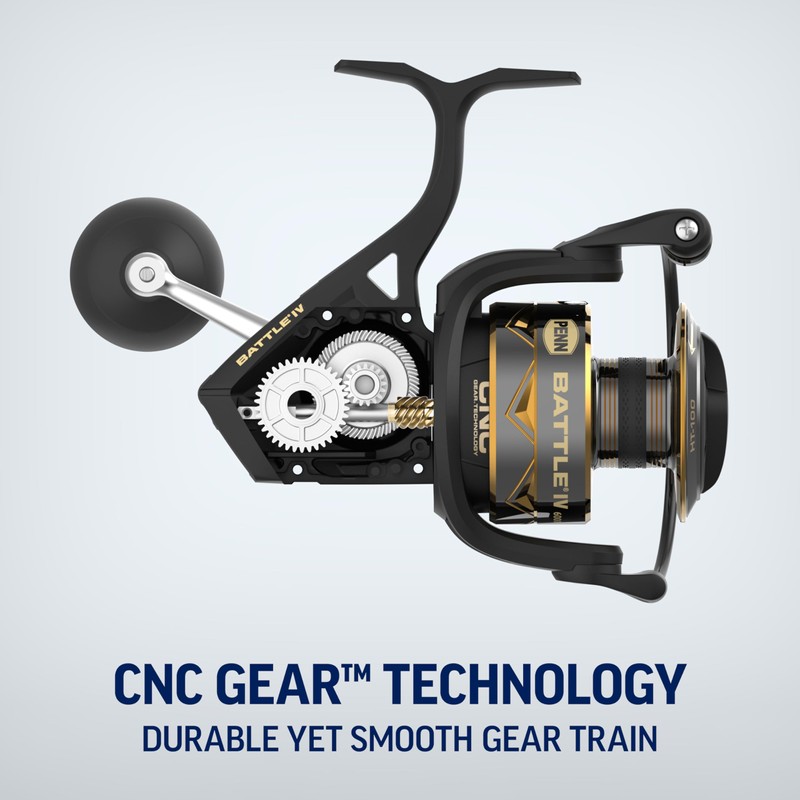 PENN Battle IV Size 8000 Spinning Fishing Reel, Full Metal Body and Sideplate, CNC Gear Technology, Hydro Armor Seals Critical Area from Water Intrusion, HT-100 Drag System