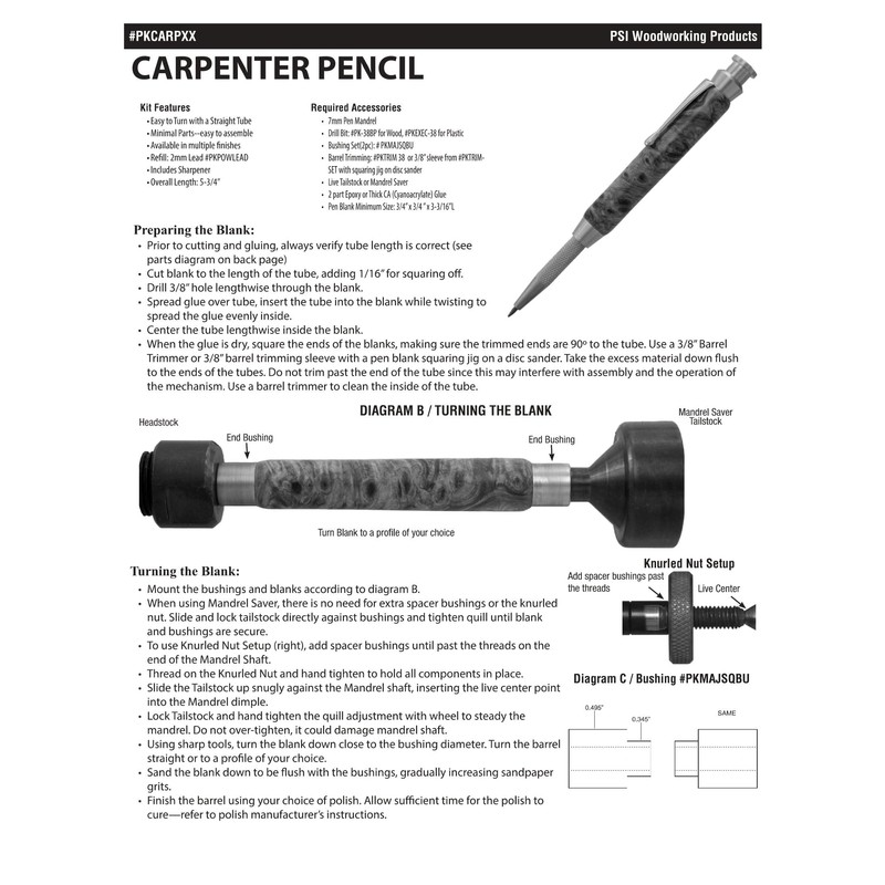 - Includes (1) PKCARPBR Brass Mechanical Carpenter 2mm Pencil Woodturning Project Kit
