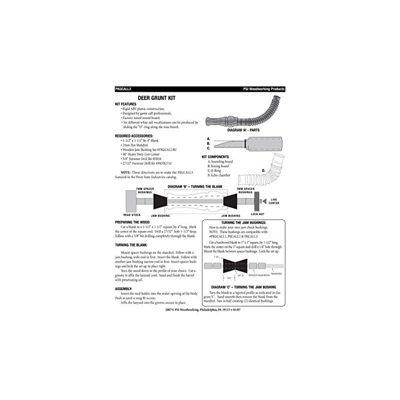 - Includes (1) PKGCALL3 White Tail Deer Grunt Call Woodturning Kit